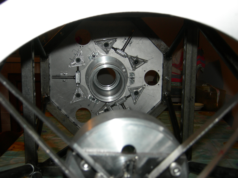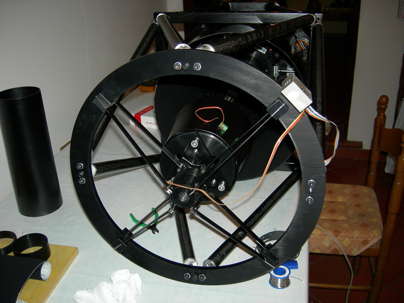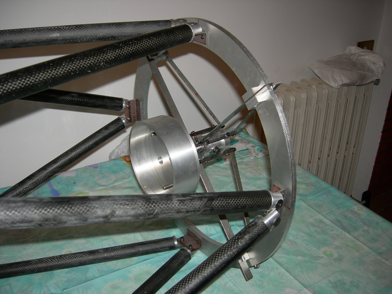 Below secondary mirror holder and spider (pic 10). While pic 11 and 12 you can see the full system. Note that the cradle that supports the primary mirror holder was made of iron, while the connection between the cradle and the ring that supports the spider are in homemade carbon truss.
